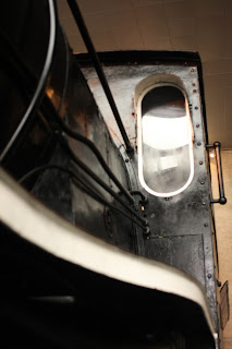 After the complicated move to Utrecht, which took no less than 16 days, the train is safely on display in the Dutch museum. The side view of the engine is dominated by the huge central driving wheel. While the Portuguese queen travelled in luxury, her driver and fireman were doing their work in less enviable circumstances, standing in the open air behind a windscreen, with no cab roof or sides to protect them from sun or rain.