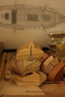 O tabuado está quase todo feito, sendo que agora falta a ultima régua que é colada de topo. Para que a régua bata certo com o tabuado existente, o Sr. Henrique utilizou um método engraçado...desenhou a curvatura numa placa de madeira, molhou a régua e prendeu como se vê na imagem...