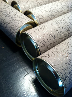 Depois levei um para a sala e coloquei em cima da mesa...olhei para a mesa e para o tecto e pensei!...e se os tubos ficarem suspensos no tecto...chamar-se-ia um candeeiro...fui forrar os restantes e eis o resultado...